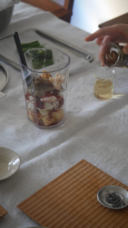 甘麹がない場合は柿などの甘味のあるフルーツで代用しても美味しくなると思いますよ。レッスンの後は事前にわたしが作っておいたキムチのご試食をしていただきなら、生徒さまの質問に答えたり、アレンジ方法をお伝えしたりとゆっくりお話しさせていただきました。